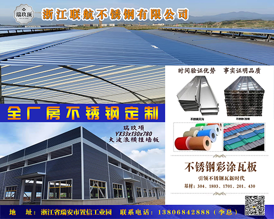 一直以來,聯(lián)航瑞玖頂不銹鋼以創(chuàng)新引領(lǐng)發(fā)展,緊跟行業(yè)發(fā)展趨勢,持續(xù)投入研發(fā),在不斷提高品質(zhì)制造水平的同時,更加注重低碳可持續(xù)發(fā)展,以自身實際行動推動不銹鋼鋼結(jié)構(gòu)行業(yè)、綠色化發(fā)展。 當今的建筑造型已經(jīng)呈現(xiàn)多元化的發(fā)展方向,一些新派建筑師不滿足于設(shè)計中規(guī)中矩的建筑形式,許多大型和超大型的極富視覺沖擊力的建筑越來越多的呈現(xiàn)在我們面前。建筑的屋頂、屋面部分也都利用外飾層作為建筑設(shè)計思想的載體,展示著現(xiàn)代建筑藝術(shù)的魅力。聯(lián)航瑞玖頂扎根不銹鋼制品領(lǐng)域30余年,憑借深厚的技術(shù)積累與創(chuàng)新研發(fā)將產(chǎn)品線擴展到水性防腐隔熱不銹鋼彩涂瓦,聚氨酯巖棉封邊不銹鋼夾芯板,不銹鋼檁條C型鋼,不銹鋼天溝等全廠房定制領(lǐng)域, 逐夢新征程,奮進新時代。